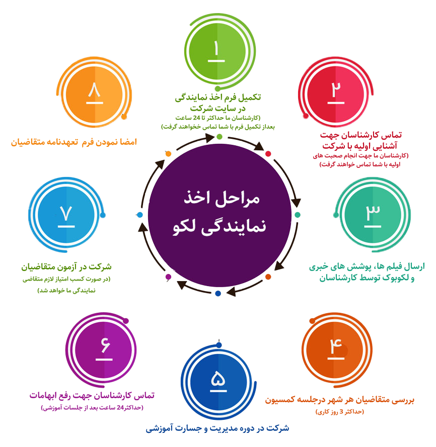 - شرکت در آزمون متقاضیان ( در صورت کسب امتیاز لازم متقاضی نمایندگی ما خواهند شد)
